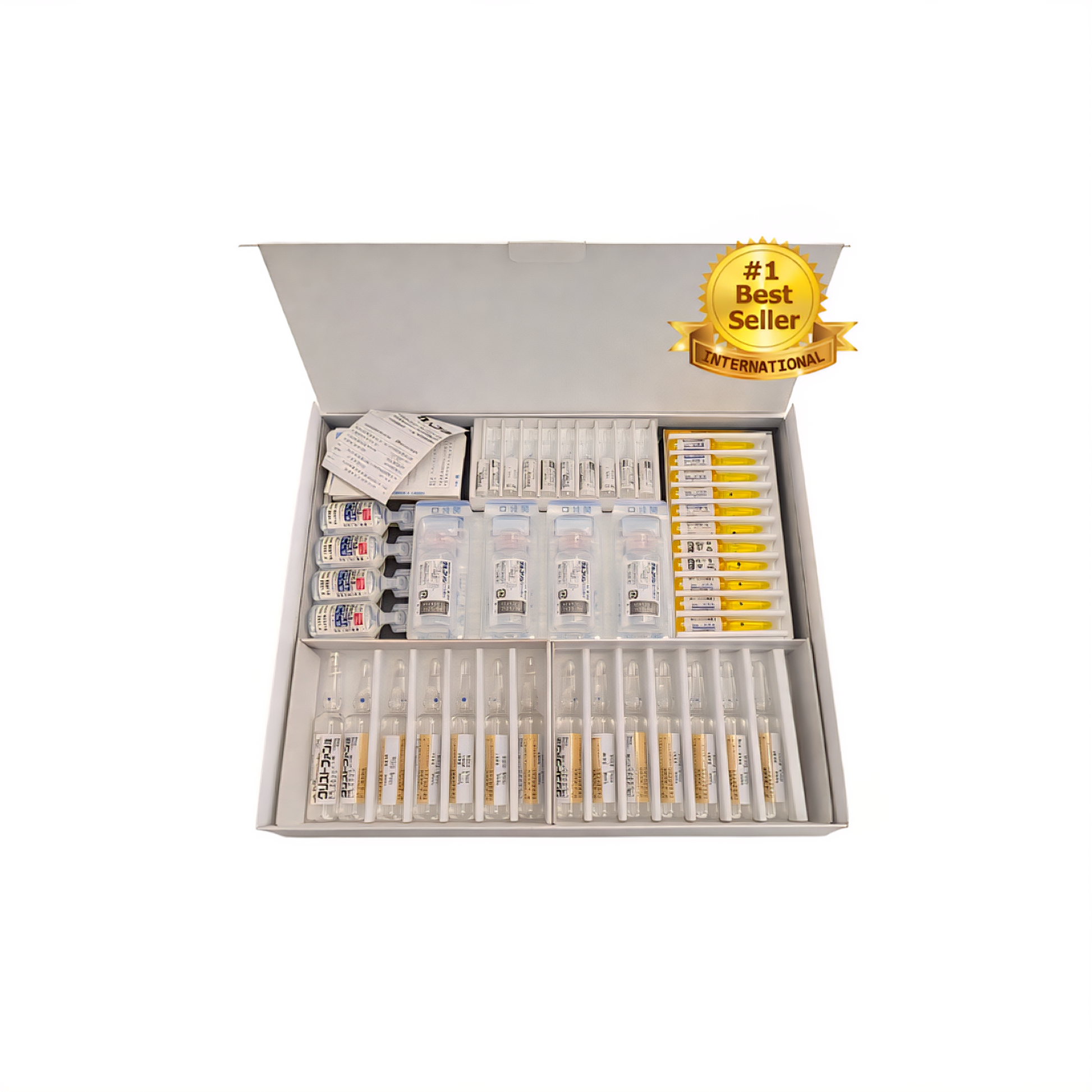 Platinum Japan Whitening Anti-age injections from Japan consists of 60 vials of 6 different components, 10 ampoules of each: Gulucolin, Ribomin S, Tranexamic acid, Biotin, Glutathione and Crystfan.